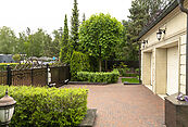Первый этаж: прихожая, холл, гардеробная, гостевой санузел, гостиная с камином и выходом на участок, кухня, столовая с выходом на террасу, большая летняя терраса, комната отдыха, бильярдная, сауна, душевая, санузел, большая летняя терраса на заднем дворе, гараж;