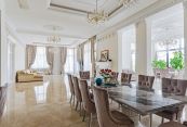 цокольный этаж: душевая, детская игровая, 1/2 санузла, санузел, купель, сауна, бильярдная, кинотеатр, кладовая (5 шт.), комната отдыха, котельная, массажный кабинет, помещение свободного назначения, сигарная, тренажерный зал, хаммам, холл