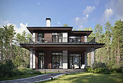 Резиденции в стиле Шале, Райт и Хай-Тек органично вписываются в окружающий ландшафт, а просторные террасы и панорамное остекление усиливают связь с естественной средой.